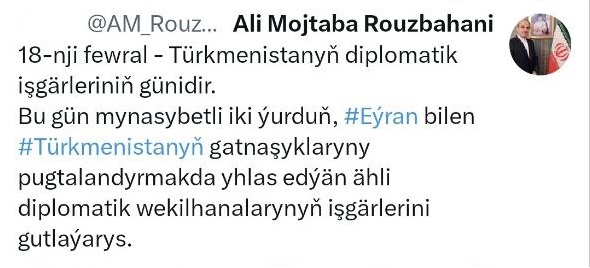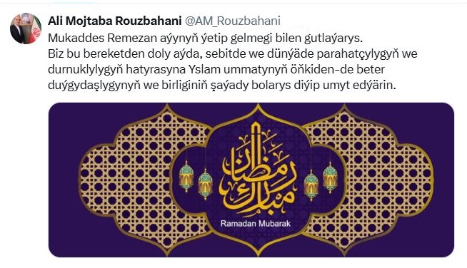 پیام سفیر جمهوری اسلامی ایران در ترکمنستان در شبکه ایکس